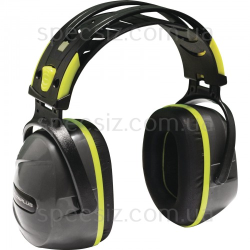 Протектори для вуха з корпусом ABS. Подушечки, наповнені синтетичною піною. Подвійне пластикове наголов'я (POM), регульоване по висоті, зі сталевою вставкою і м'якою і провітрюваною арматурою для комфорту.