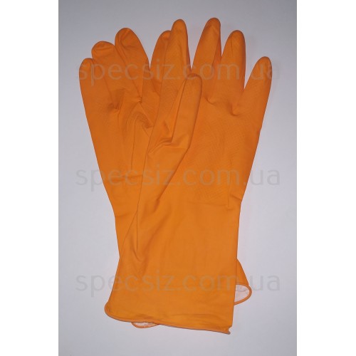 Рукавички латексні флоковані господарські. Довжина 30 см. Рельєфні в області захвату для запобігання ковзання.
